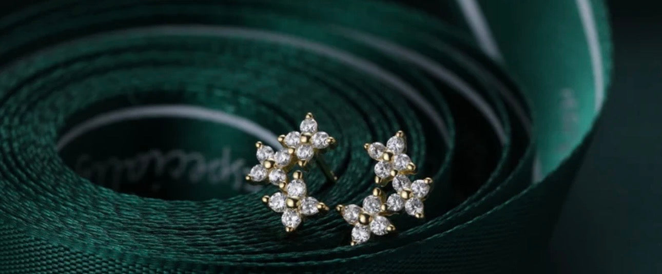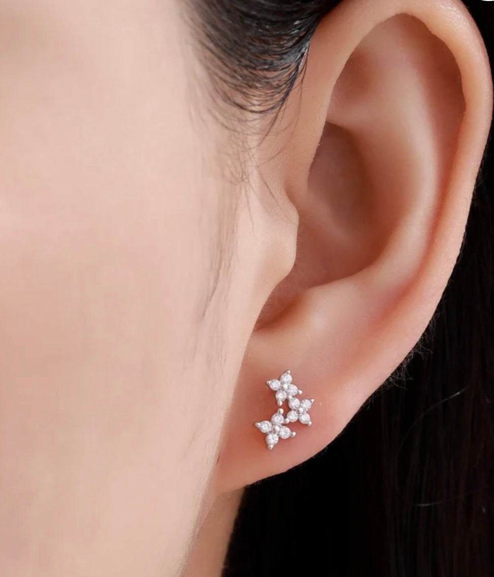 Pendientes de boton con circonitas y pequeno ramo de hortensias en plata de ley, oro u oro rosa.